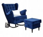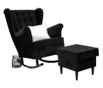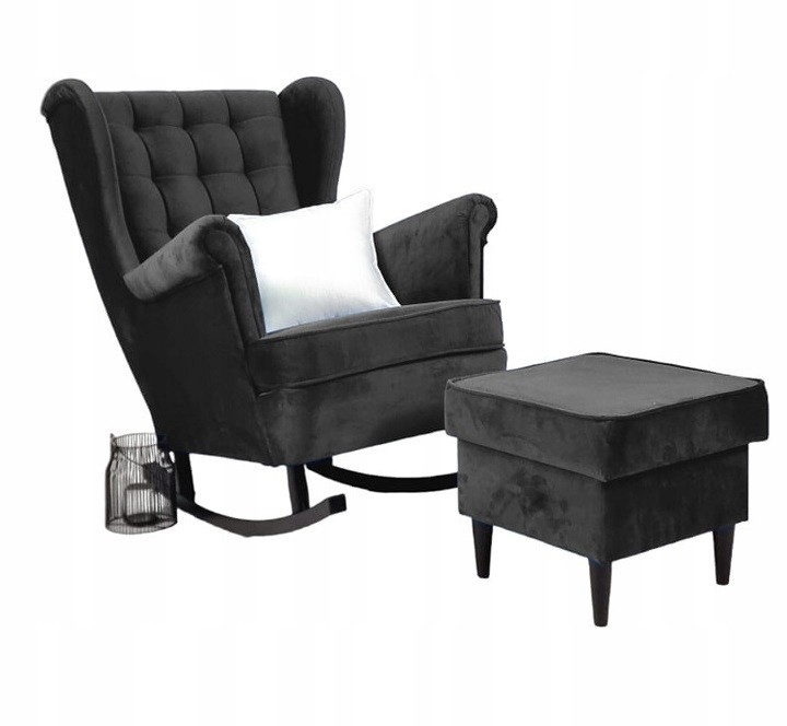 FOTEL USZAK NA PŁOZACH DREWNIANYCH + PODNÓŻEK OTWIERANY ZE SCHOWKIEM W WYBRANYM KOLORZE Z DREWNIANYMI NÓŻKAMI TYPU STOŻEK WZÓR PIKOWANIA WCIĄGI.