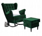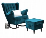 FOTEL USZAK NA PŁOZACH DREWNIANYCH + PODNÓŻEK OTWIERANY ZE SCHOWKIEM W WYBRANYM KOLORZE Z DREWNIANYMI NÓŻKAMI TYPU STOŻEK WZÓR PIKOWANIA WCIĄGI.
