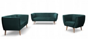 Zestaw mebli wypoczynkowych PASS idealnie komponuje się z wnętrzami urządzonymi w stylu nowoczesnym i skandynawskim. Meble posiadają przykuwające uwagę przeszycia i dosyć wysokie, drewniane nóżki. Fotel jak i kanapy są bardzo wygodne, posiadają miękkie, tapicerowane oparcia i siedziska.