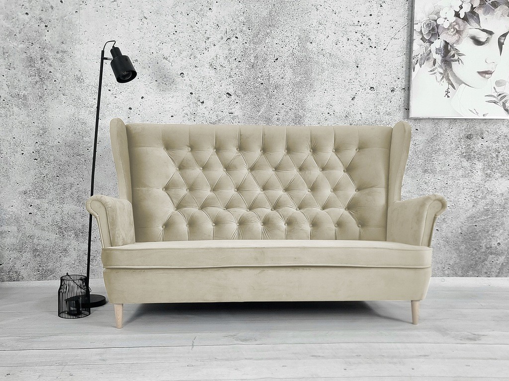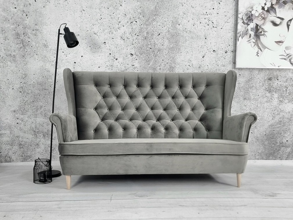 Klasyczna Sofa uszak 3 osobowa głęboko pikowana w stylu chesterfield stworzona dla ludzi, którzy cenią sobie nowoczesność styl i elegancję. Odnowi wnętrze każdego salonu czy biura. Konstrukcja jest solidna i trwała stelaż wykonany z drewna bukowego. Ergonomiczne wymiary zapewniają swobodę, wygodę i umeblowanie pomieszczenia.