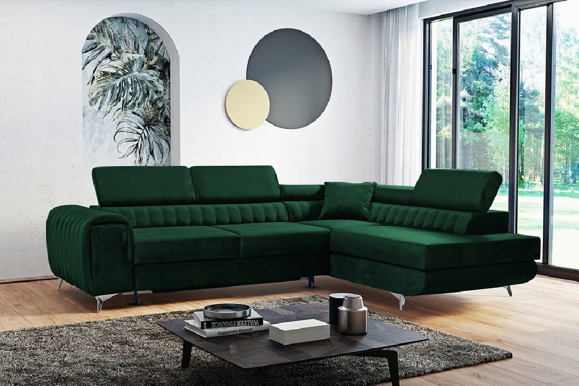 Narożnik EGO to nowoczesne połączenie stylu i elegancji, które sprawi, że każde wnętrze nabierze niepowtarzalności. Wygodny narożnik z dużą powierzchnią spania i pojemnikiem na pościel doskonale sprawdzi się w codziennym użytkowaniu. Mebel posiada regulowane zagłówki. Siedzisko wykonane jest na sprężynach falistych co w połączeniu z solidnym szkieletem gwarantuje wytrzymałą konstrukcję. Nasze meble cechuje staranne wykonanie, najwyższa jakość użytych materiałów oraz dbałość o najmniejszy szczegół. Narożnik możemy wykonać w wybranej tkaninie z naszej oferty. Zapewniamy duży komfort z użytkowania oraz satysfakcje.