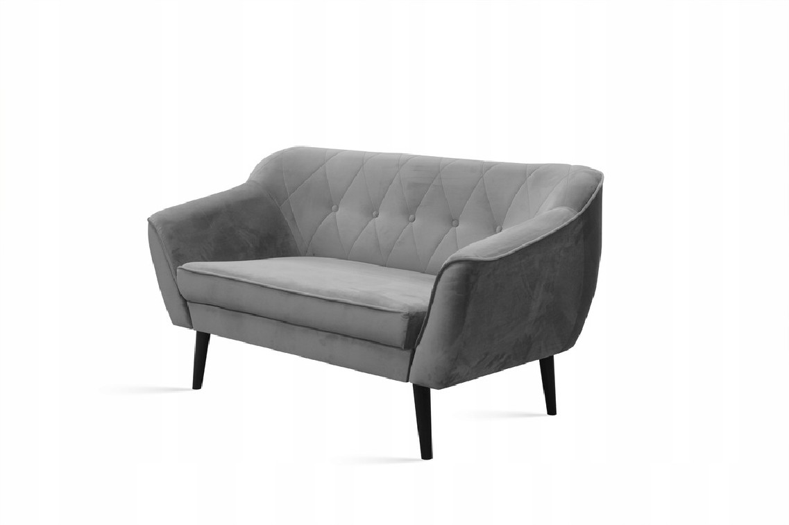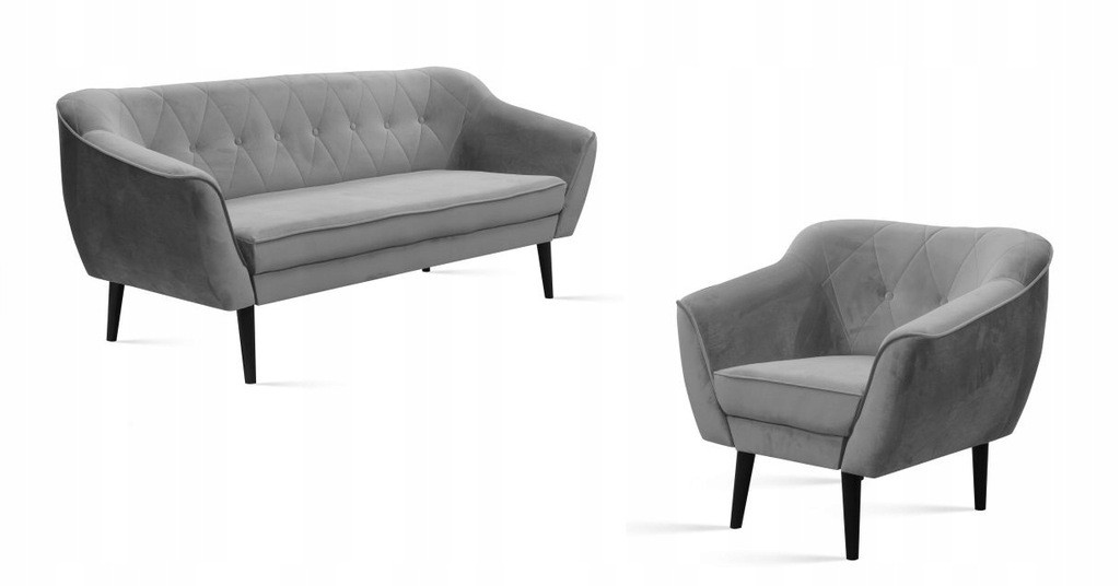 SOLIDNA SOFA 2 + FOTEL W KOLORZE SZARYM Z DREWNIANYMI NÓŻKAMI WZÓR PIKOWANIA OPARCIA ROMBY