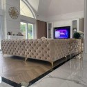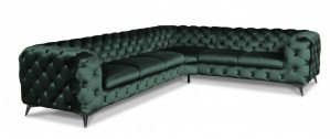 Narożnik Chesterfield to prawdziwa innowacja i idealny produkt dla tych, którzy cenią sobie nowoczesne wzornictwo w mieszkaniu. Nóżki wykonane ze stali nierdzewnej na wysoki połysk przez co podkreślają współczesny styl Chesterfield. Głębokość osadzenia siedziska wynosi 64 cm dzięki czemu siedzenie jest bardzo komfortowe. Wysoki poziom komfortu siedzenia zapewnia również to, że w narożniku zastosowano wysokiej jakości piankę komfort wypełniającą, która dostosowuje się do kształtu ciała oraz sprężyny. Masywność bukowej ramy zapewnia stabilność i wytrzymałość konstrukcji.