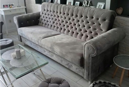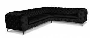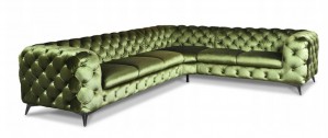 Narożnik Chesterfield to prawdziwa innowacja i idealny produkt dla tych, którzy cenią sobie nowoczesne wzornictwo w mieszkaniu. Nóżki wykonane ze stali nierdzewnej na wysoki połysk przez co podkreślają współczesny styl Chesterfield. Głębokość osadzenia siedziska wynosi 64 cm dzięki czemu siedzenie jest bardzo komfortowe. Wysoki poziom komfortu siedzenia zapewnia również to, że w narożniku zastosowano wysokiej jakości piankę komfort wypełniającą, która dostosowuje się do kształtu ciała oraz sprężyny. Masywność bukowej ramy zapewnia stabilność i wytrzymałość konstrukcji.