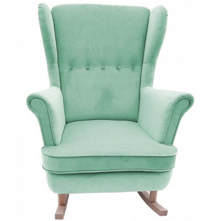 SOLIDNY FOTEL BUJANY MALAGA USZAK W DOWOLNYM KOLORZE Z DREWNIANYMI PŁOZAMI, BIEGUNAMI