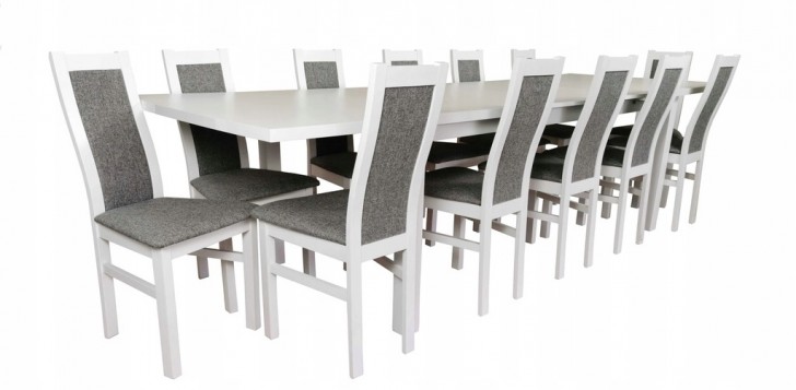 ZESTAW 12 OSOBOWY STÓŁ ROZKŁADANY SALON BIAŁY
