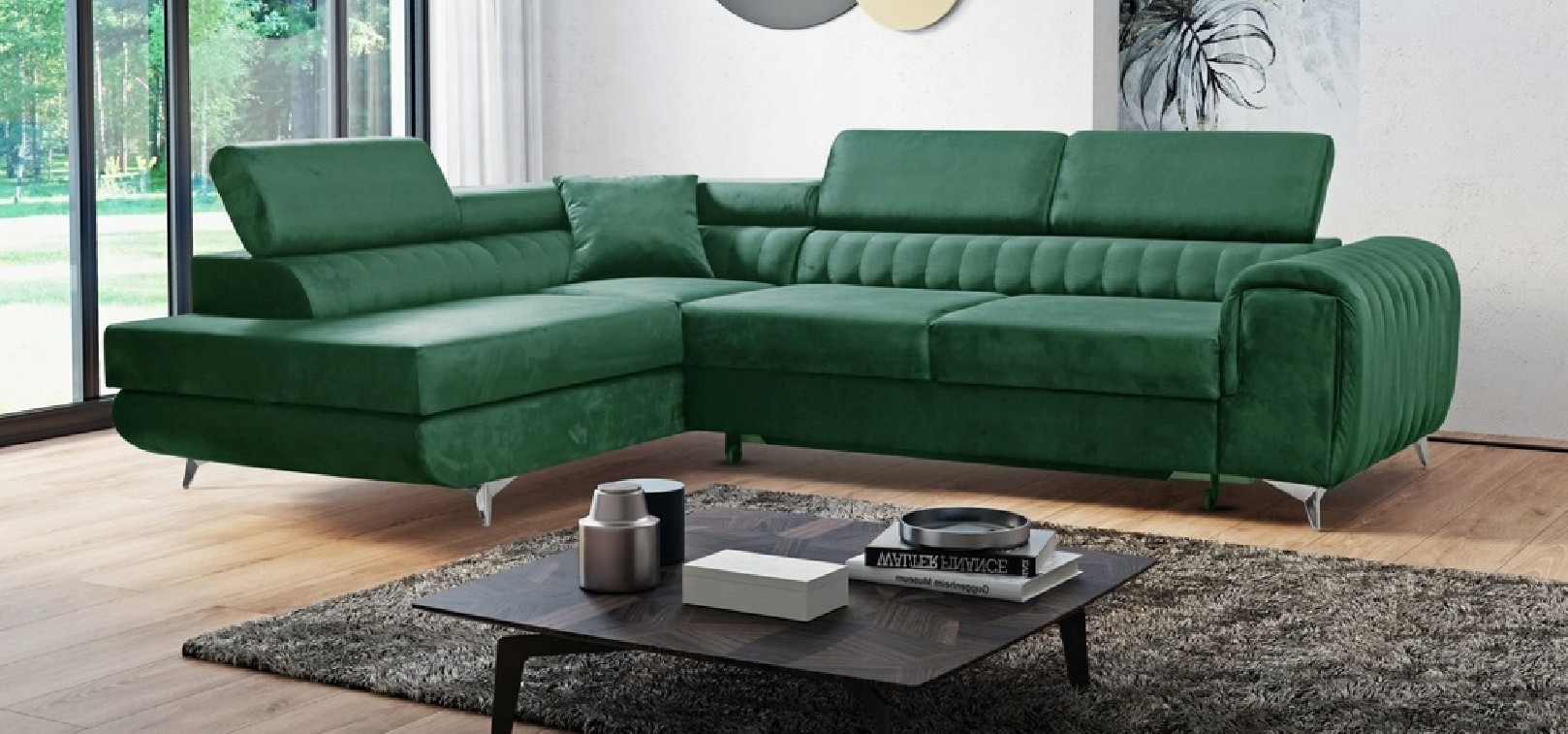- Narożnik jest rozkładany za pomocą wózka typu delfin , który ułatwia codzienne użytkowanie