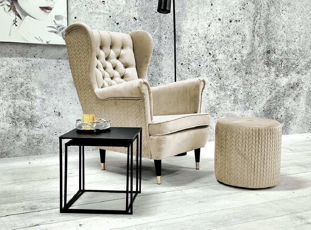 FOTEL USZAK GLAMOUR CHESTERFIELD PODNÓŻEK PREMIUM