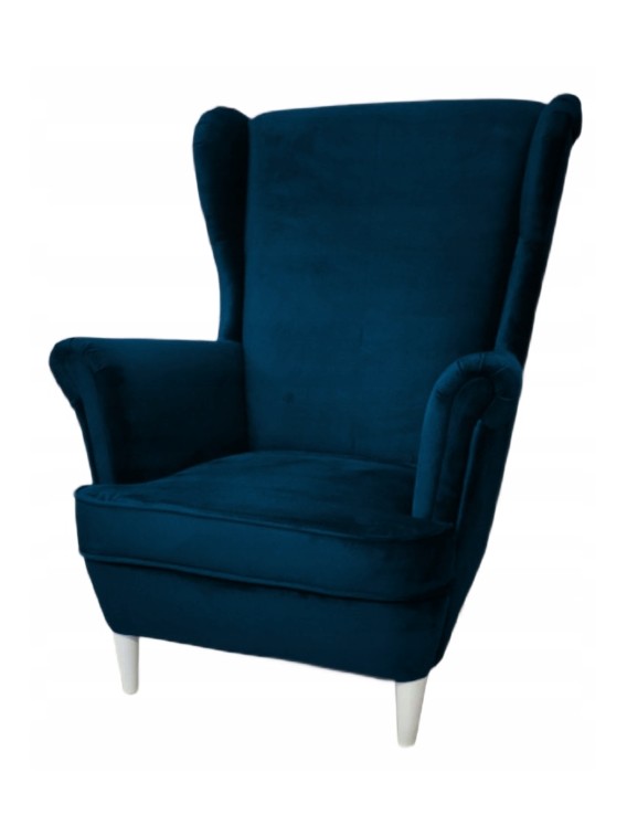 PIĘKNY DUŻY SOLIDNY FOTEL USZAK SKANDYNAWSKI W WYBRANYM KOLORZE Z PROSTYMI NÓŻKAMI Z GŁADKIM OPARCIEM BEZ PIKOWANIA GUZIKAMI