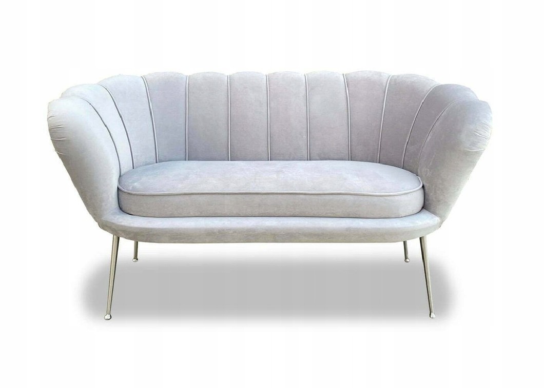 ZESTAW MUSZELKA 2+1+1 SOFA 2 OSOBOWA W KOLORZE SZAROŚCI Z METALOWYMI SREBRNYMI NÓŻKAMI + 2 FOTELE MUSZELKA