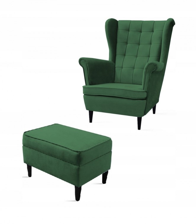 FOTEL USZAK WCIĄGI + PODNÓŻEK OTWIERANY W WYBRANYM KOLORZE Z PROSTYMI NÓŻKAMI WZÓR PIKOWANIA WCIĄGI