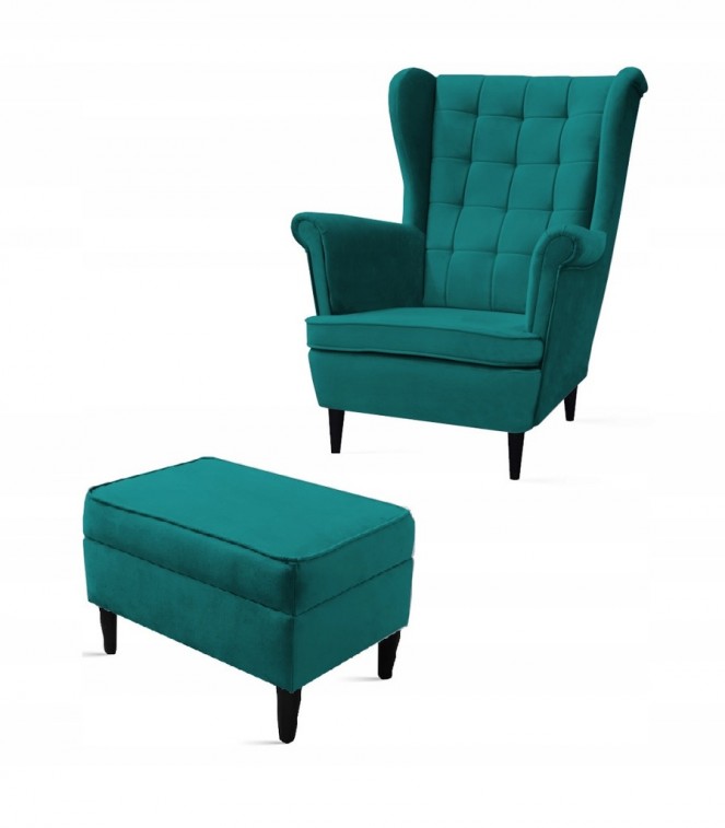 FOTEL USZAK SKANDYNAWSKI PUFA SCHOWEK PLAMOODPORNY