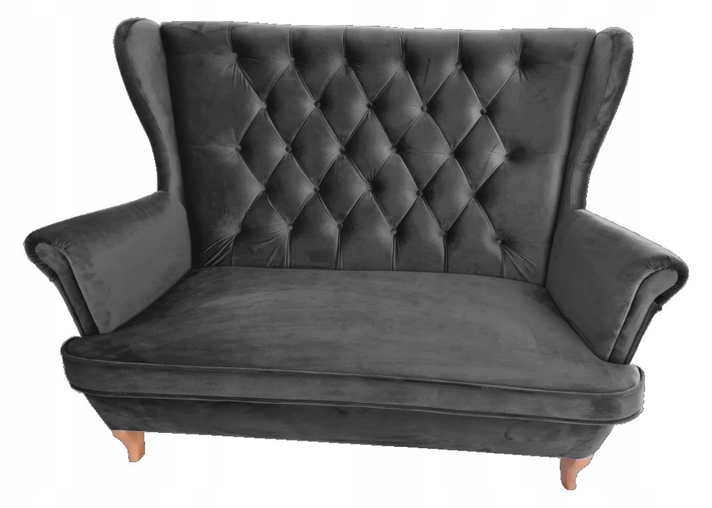 Klasyczna Sofa 2 osobowa Uszak stworzona dla ludzi, którzy cenią sobie nowoczesność styl i elegancję. Odnowi wnętrze każdego salonu czy biura. Konstrukcja jest solidna i trwała stelarz wykonany z drewna bukowego. Ergonomiczne wymiary zapewniają swobodę, wygodę i umeblowanie pomieszczenia.