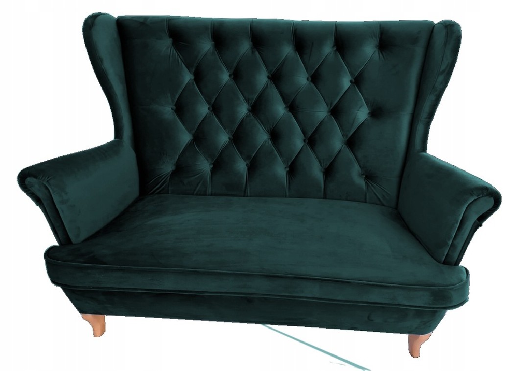 Klasyczna Sofa 2 osobowa Uszak stworzona dla ludzi, którzy cenią sobie nowoczesność styl i elegancję. Odnowi wnętrze każdego salonu czy biura. Konstrukcja jest solidna i trwała stelarz wykonany z drewna bukowego. Ergonomiczne wymiary zapewniają swobodę, wygodę i umeblowanie pomieszczenia.