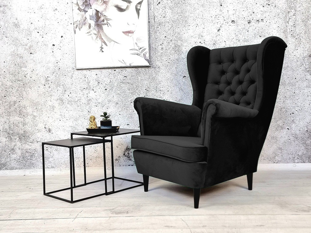 FOTEL USZAK STYL CHESTERFIELD GŁĘBOKI PIK cleanaboo W WYBRANYM KOLORZE Z PROSTYMI NÓŻKAMI GŁĘBOKO PIKOWANY GUZIKAMI W KARO
