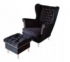 FOTEL USZAK GLAMOUR CHESTERFIELD PODNÓŻEK KRYSZTAŁ