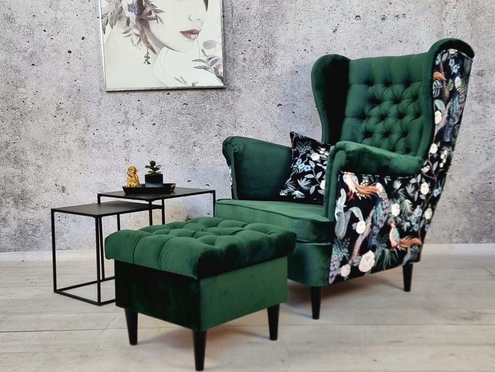 FOTEL USZAK GLAMOUR CHESTERFIELD + PODNÓŻEK CHESTERFIELD ZE SCHOWKIEM OTWIERANY