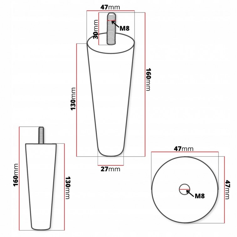 Nóżka meblowa z drewna stożek walec 47x130 13 cm