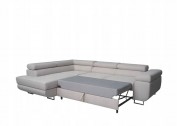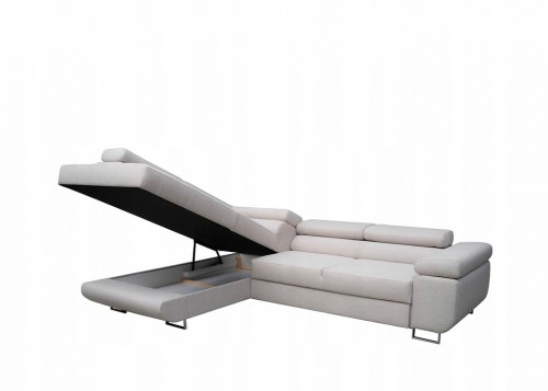 Narożnik ANTOS L  posiada funkcję spania oraz pojemnik na pościel. Nogi w narożniku zastosowano chromowe. Narożnik posiada 3 regulowane zagłówki, ozdobne przeszycia oraz piki na siedzisku.