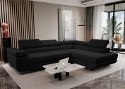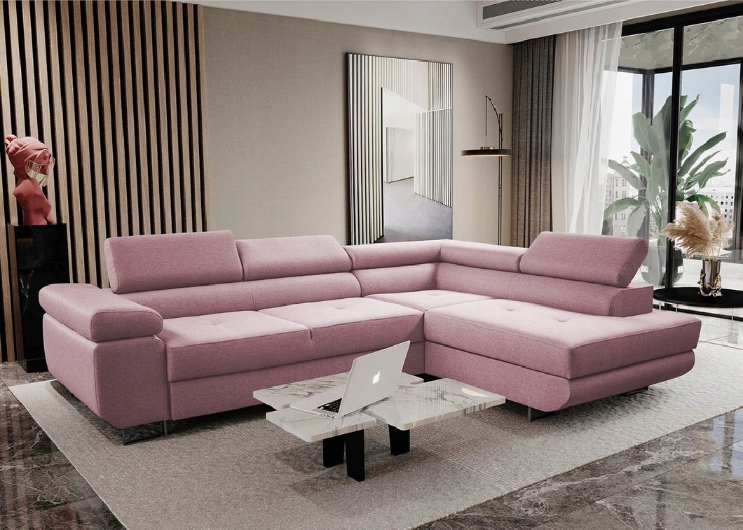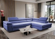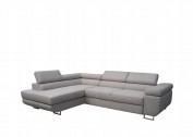 Narożnik ANTOS L  posiada funkcję spania oraz pojemnik na pościel. Nogi w narożniku zastosowano chromowe. Narożnik posiada 3 regulowane zagłówki, ozdobne przeszycia oraz piki na siedzisku.