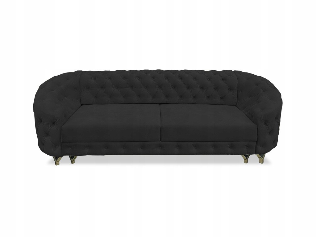 PIĘKNA DUŻA SOLIDNA KANAPA MOLLI ROZKŁADANA Z POJEMNIKIEM NA POŚCIEL W KOLORZE CZARNYM Z DREWNIANYMI PROSTYMI NÓŻKAMI WZÓR PIKOWANIA Chesterfield