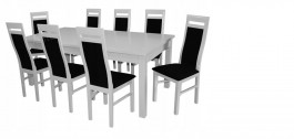 BIAŁY ZESTAW stół 100x250/350 X 8 krzeseł DREWNO