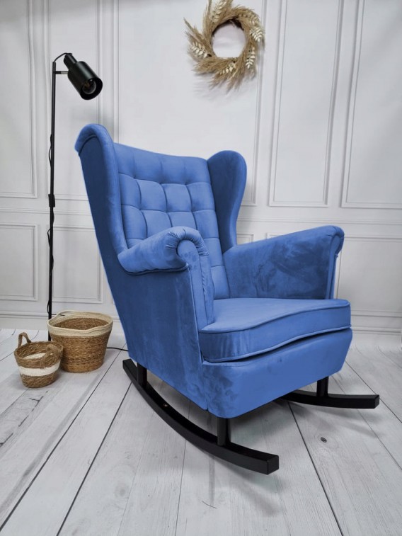Fotel Uszak bujny na biegunach drewniane płozy