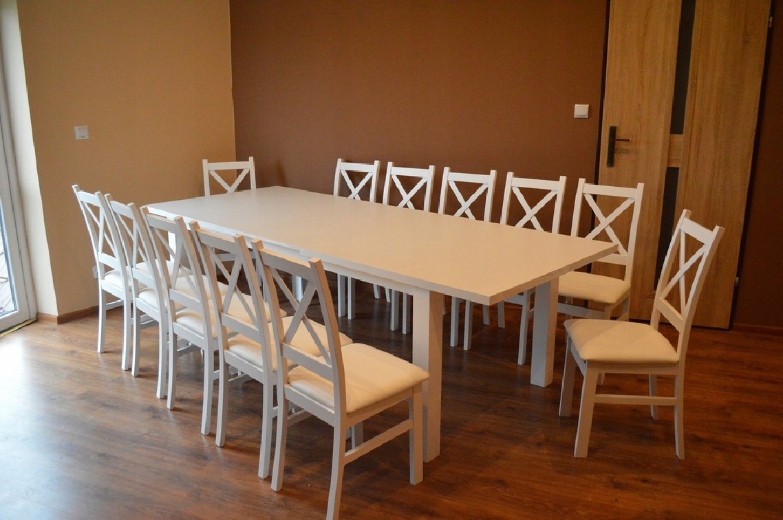 - Istnieje możliwość zmiany koloru stołu(bezpłatnie)oraz rodzaju nóg.Można również dokupić dowolny rodzaj i ilość krzeseł z naszych pozostałych aukcji.