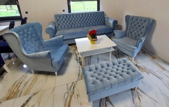 KOMPLET SKANDYNAWSKI SOFA+2 FOTELE+PODNÓŻEK