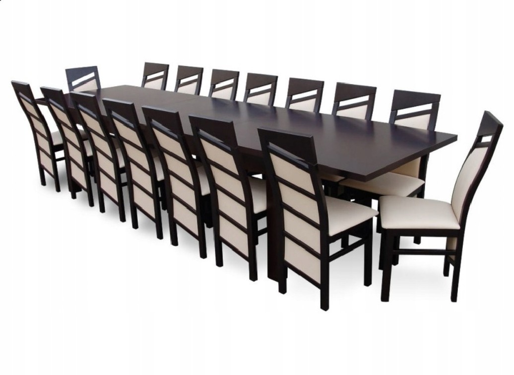 Piękny DUŻY ZESTAW DĘBOWY FORNIR NATURALNY stół rozkładany MST-8 100x250+2x50 wkładka długość po rozłożeniu 300/350cm i 16 krzeseł Chińczyk z litego drewna bukowego.