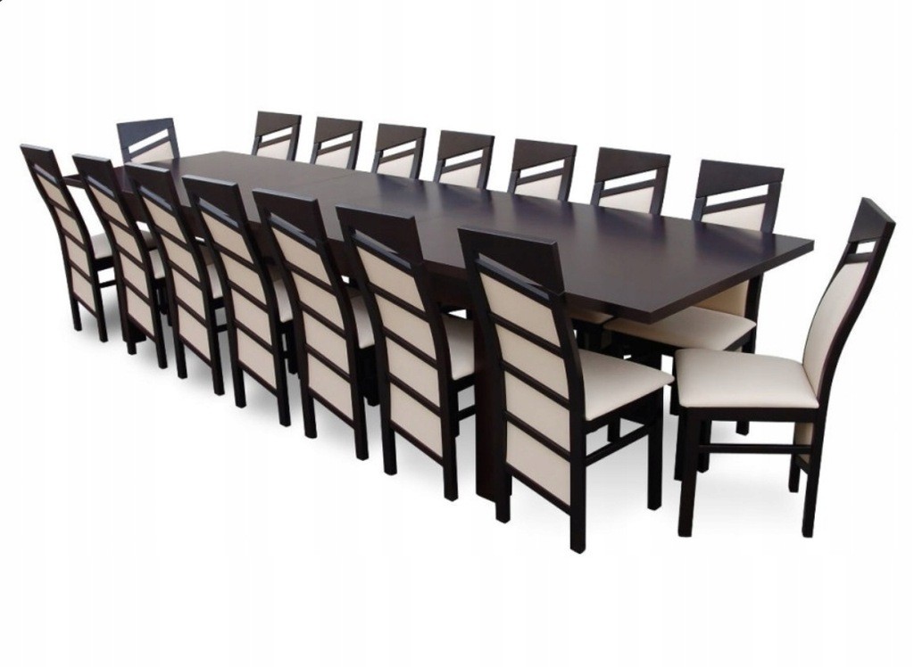 DUŻY ZESTAW stół 100x250/350 X 16 krzeseł DREWNO