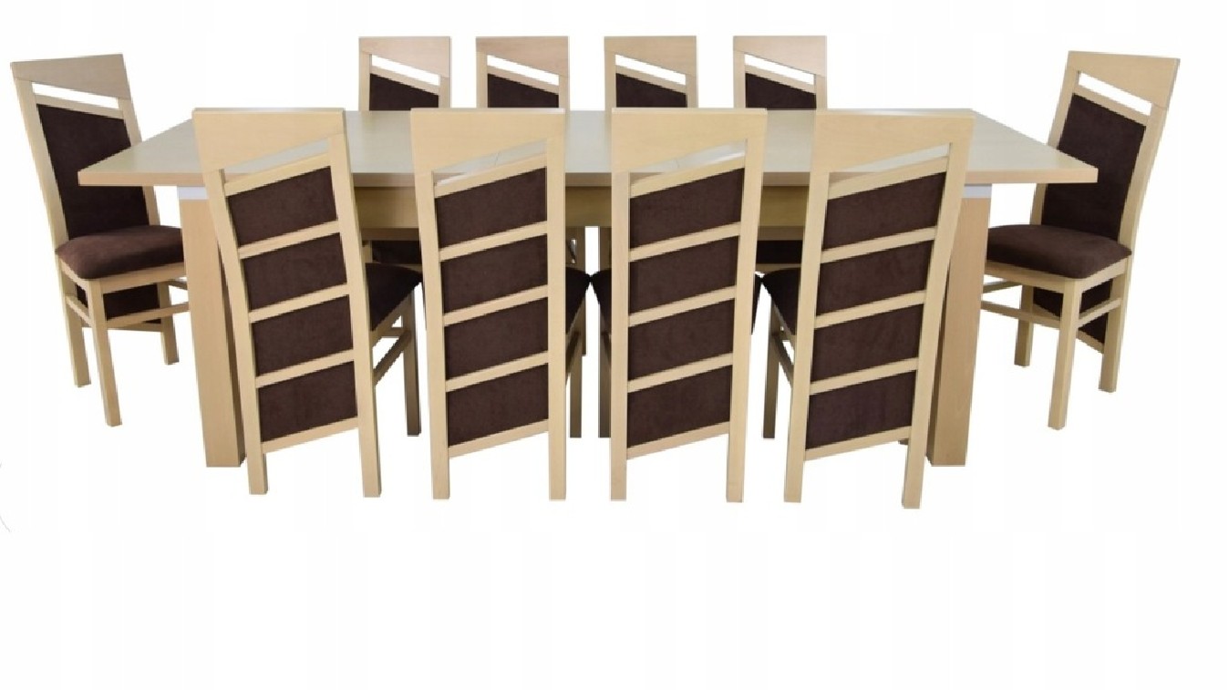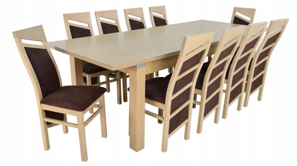 ZESTAW Stół rozkładany fornirowany MST-8 100x200+2x50 wkładka długość po rozłożeniu 250/300cm i 10 krzeseł SKOS z litego drewna bukowego.