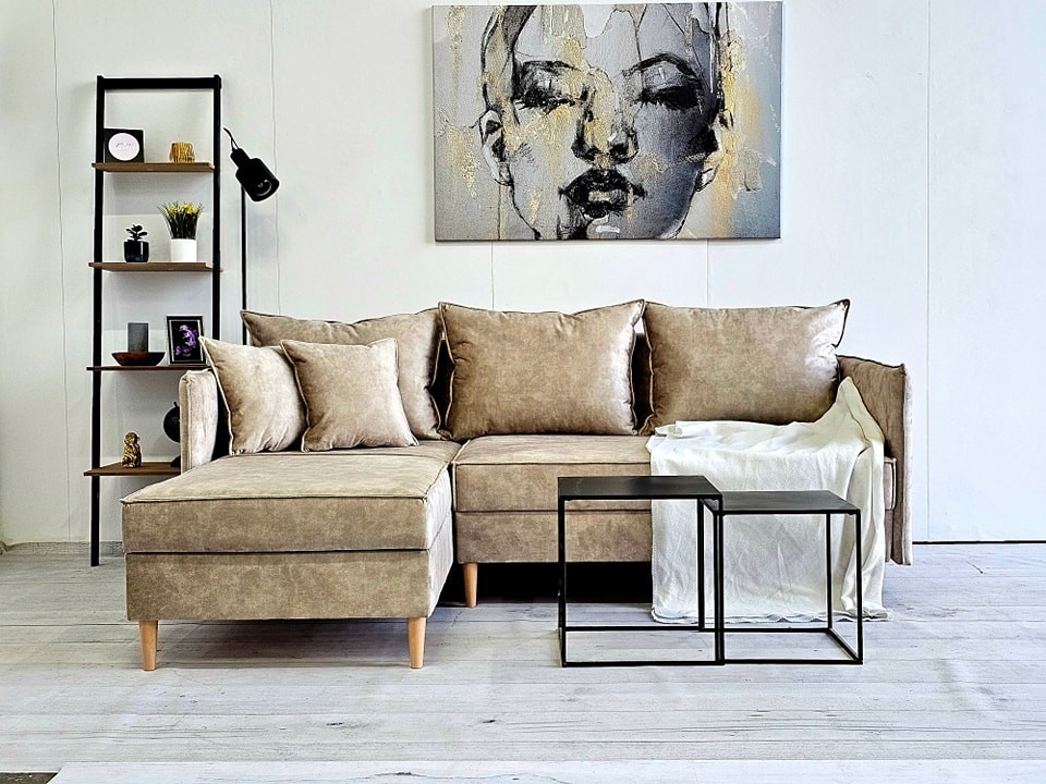 Narożnik rogówka skandynawska kompaktowa rozkładana z funkcją spania i pojemnikiem próbnik materiałów VELUTTI
