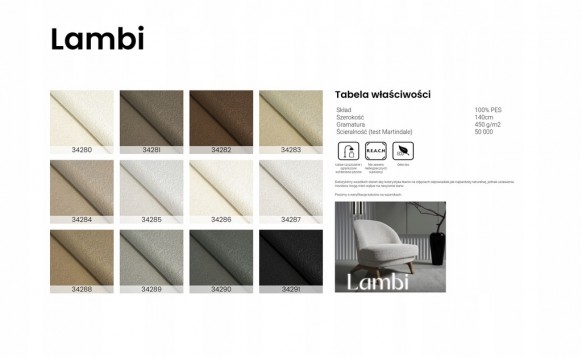 Wszystkie tkaniny oraz wybarwienia nóg są w jednej grupie cenowej.