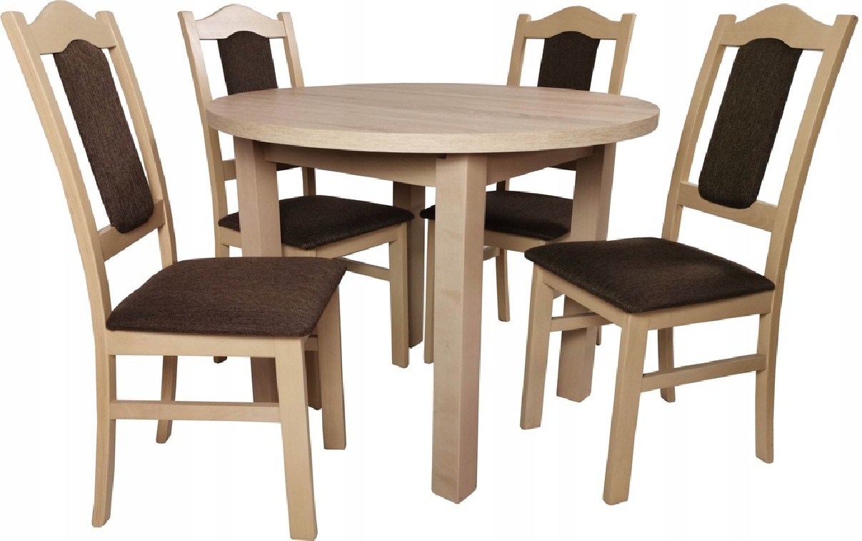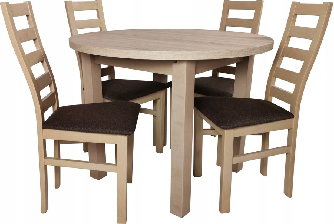 - Rozkładany blat: Średnica 100 cm z praktyczną wkładką 40 cm pozwala na szybkie powiększenie powierzchni użytkowej w razie potrzeby. Idealny zarówno na co dzień, jak i podczas spotkań rodzinnych.