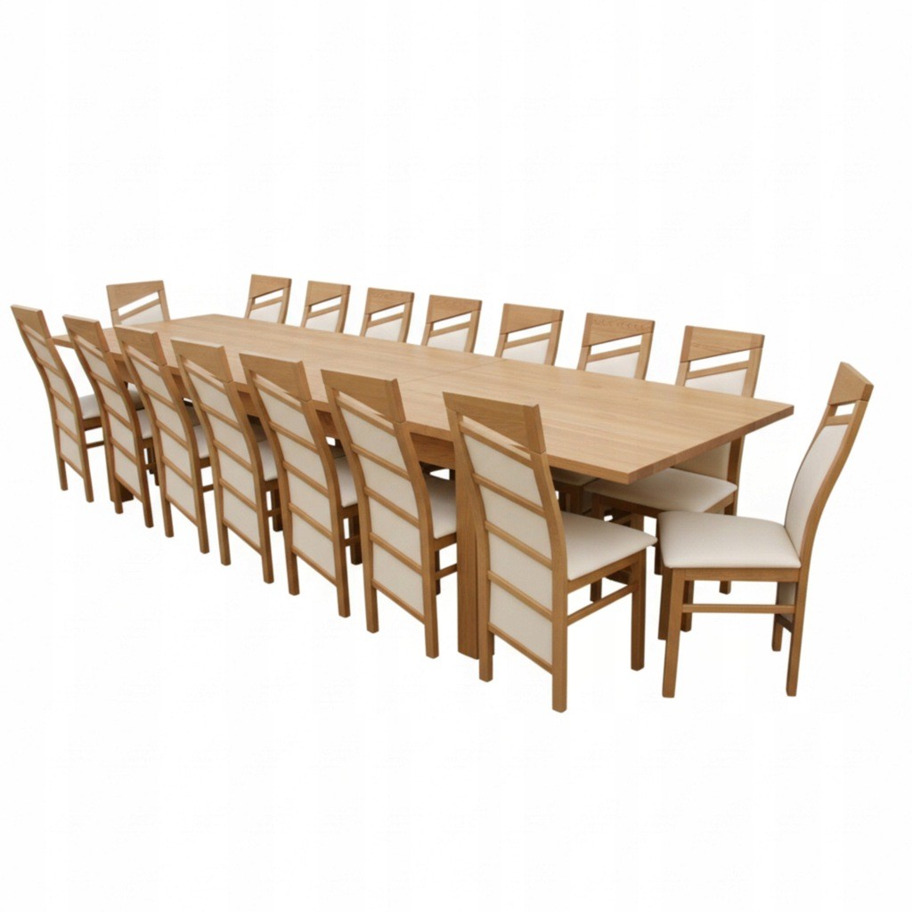 DUŻY ZESTAW DO SALONU STÓŁ ROZKŁADANY NATURALNY DĘBOWY FORNIR 100X250/350 + 16 KRZESEŁ Z LITEGO DREWNA