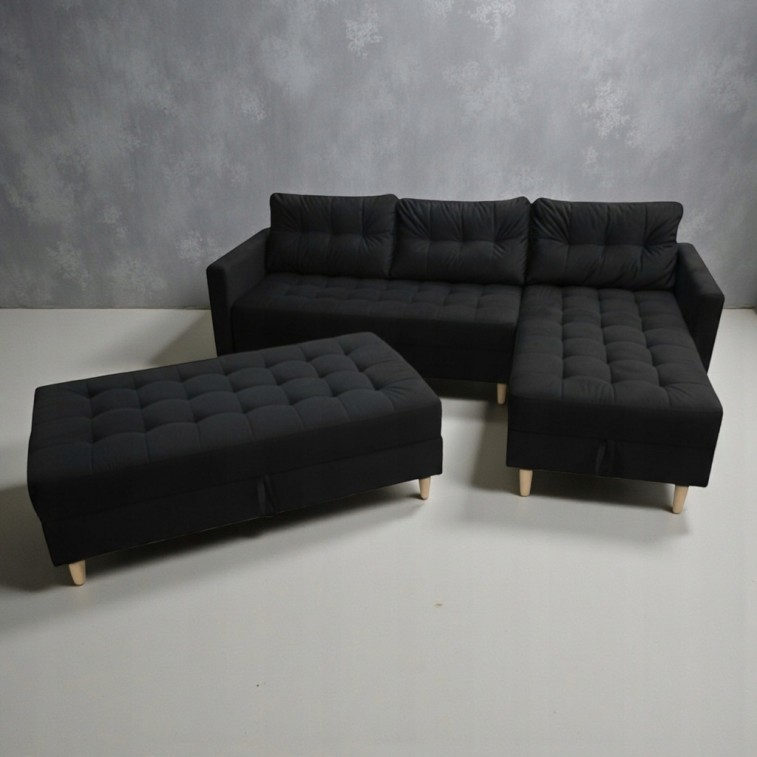 Nie tylko wyrazistym, ale i funkcjonalnym dodatkiem do narożnika jest duża pufa. Dosuwając ją do narożnika zyskujemy dodatkową powierzchnię siedziska. Co więcej - pufa oraz narożnik posiada przestronny schowek, który sprawdzi się jako pojemnik na pościel.