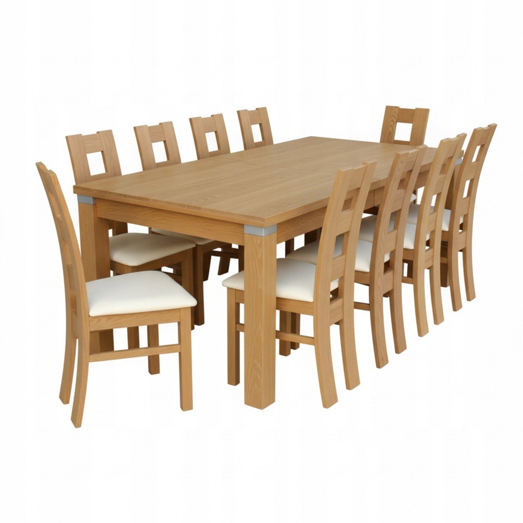 ZESTAW STÓŁ DĘBOWY FORNIR NATURALNY 100x200/ 300cm + 10 KRZESEŁ Z DREWNA