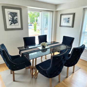 i 6 krzeseł tapicerowanych guzikami i pinezkami w stylu GLAMOUR .