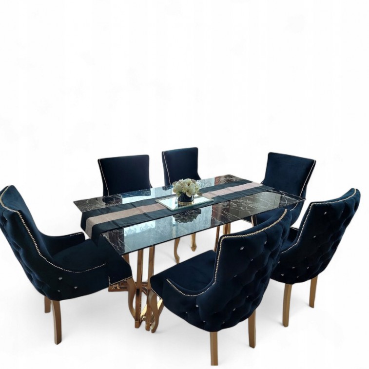 ZESTAW GLAMOUR DO SALONU STÓŁ ZŁOTO MARMUR + 6 x KRZESŁO GLAMOUR PIK