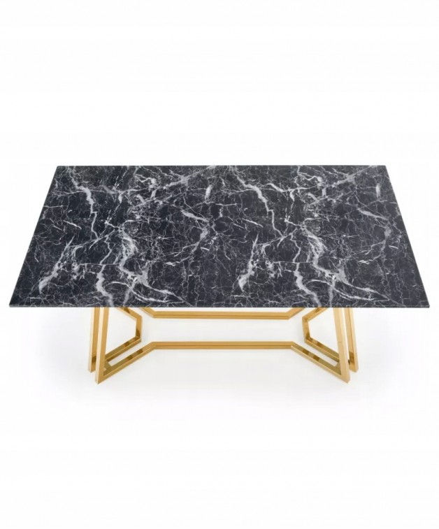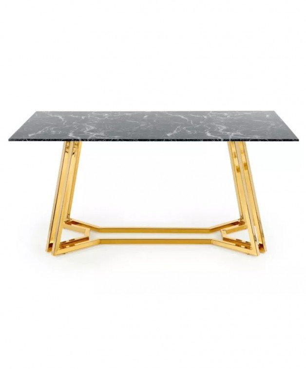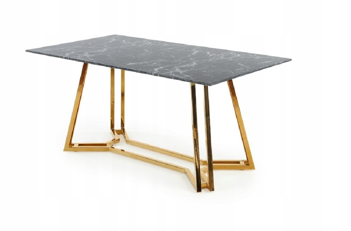 wymiary: 160/90/75 cm, materiał: szkło / stal chromowana kolor: blat - czarny marmur, nogi - złoty