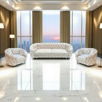 Zestaw Molly to wyjątkowy mebel wypoczynkowy. Zaprojektowany przez zespół młodych, zdolnych designerów łączy ponadczasową, sprawdzoną od lat 50. ubiegłego wieku formę kanapy chesterfield, z nowoczesnymi standardami produkcyjnymi i materiałami najwyższej jakości. Klasyczna forma kanapy z szerokim oparciem tworzącym całość wraz z wysokimi podłokietnikami kusi przytulnością i obietnicą fantastycznego odpoczynku w miłym towarzystwie lub głębokiego relaksu z ulubioną książką.