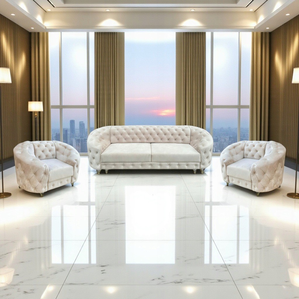 ZESTAW DO SALONU CHESTERFIELD KANAPA ROZKŁADANA + 2 FOTELE PIKOWANE