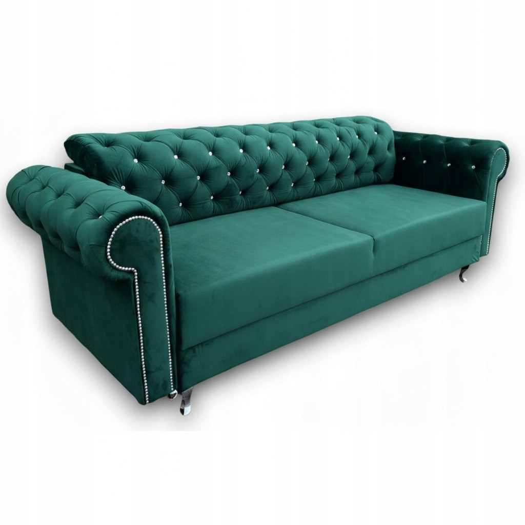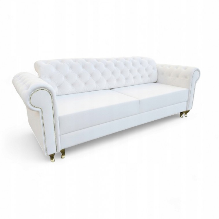 KANAPA SOFA PIKOWANA W STYL CHESTERFIELD POJEMNIK NA POŚCIEL FUNKCJA SPANIA