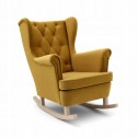 FOTEL USZAK BUJANY NA DREWNIANYCH BIEGUNACH PŁOZACH PLAMOODPORNY