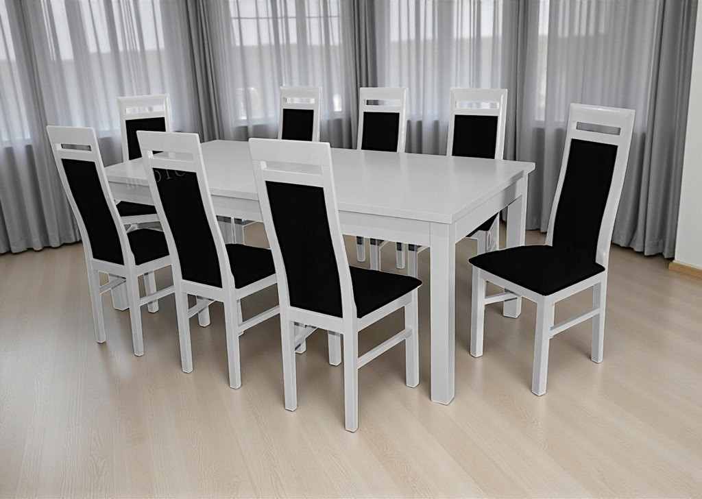 BIAŁY ZESTAW STÓŁ RĘCZNIE MALOWANY ROZKŁADANY MST-8 100x250+2x50 wkładka długość po rozłożeniu 300/350cm i 8 krzeseł LUNA z litego drewna bukowego