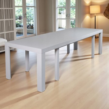 DUŻY PRAKTYCZNY STÓŁ 4,5 METRA ROZKŁADANY BARON 100x200/250/300/350/400/450 8 NÓG BIAŁY GŁADKI