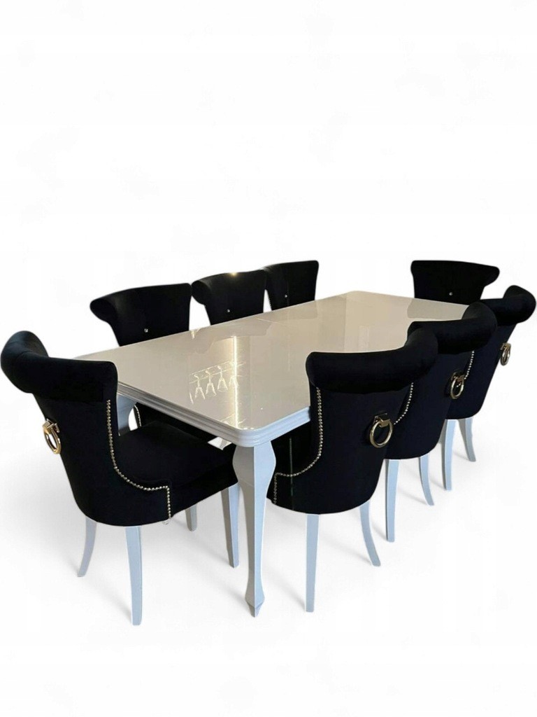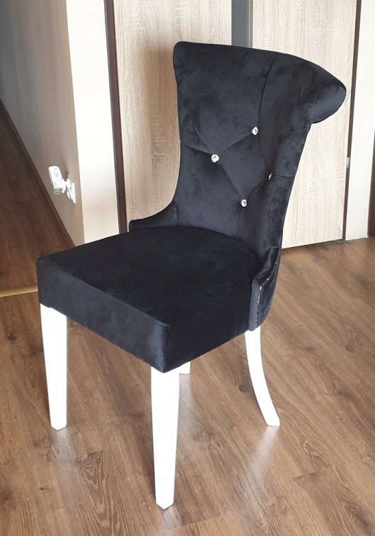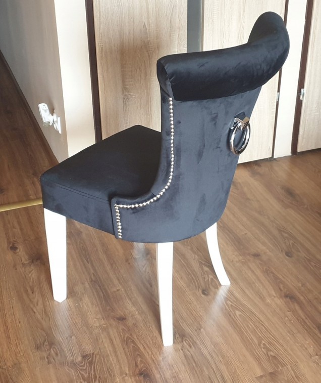 ORAZ 8x Krzesło CAMILA W CZARNYM odcieniu z białymi nóżkami z kołatką styl GLAMOUR.