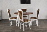 Zestaw do salonu. Stół okrągły rozkładany dębowy fornir MS-3 LUDWIK 100cm+1x40cm wkładka długość po rozłożeniu 140 cm i 4 krzesła mk27 z litego drewna bukowego