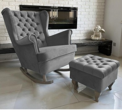 - Stelaż fotela całkowicie wykonany z litego drewna .
